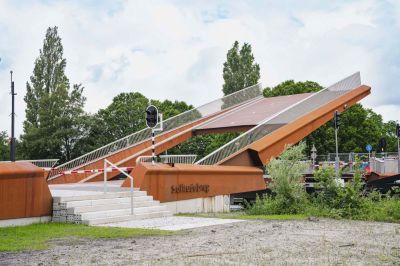 • Tekst: La situation urbanistique du site aux abords de la rue Fransman à Laeken est très complexe. Les voies ferrées partagent brutalement la rue en deux. En raison de la topographie complexe et des surfaces en pente existantes, l’espace public est mal défini. Les nouveaux socles doivent créer de nouveaux espaces publics et améliorer l’accessibilité et la lisibilité du pont et du site. La passerelle est réalisée en tôles pliées en acier, ce qui permet sa préfabrication en atelier et un montage rapide sur site.