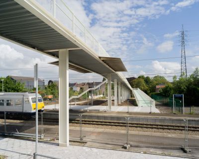 • Tekst: <p>La gare de Fleurus, proche de Brussels South Charleroi Airport, a été entièrement rénovée afin de faciliter l’accès à ce dernier par transport en commun. Le chemin de fer, combiné à des navettes TEC, se voit équipé de nouvelles infrastructures mobilisant environ 170 tonnes d’acier, dont une impressionnante passerelle au-dessus des voies. Trois cages d’ascenseurs et autant d’escaliers viennent compléter le projet, ainsi que deux petits bâtiments pour les voyageurs.</p>