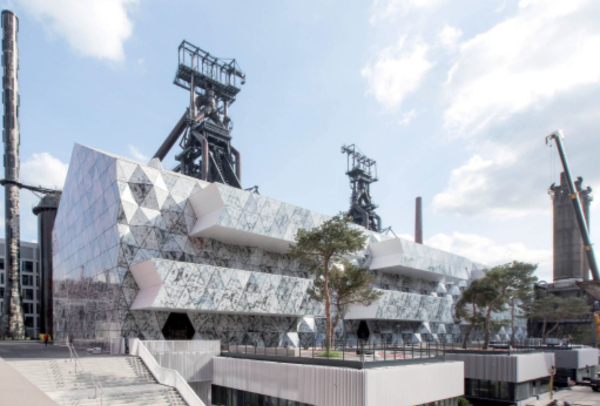Si on fait abstraction des hauts fourneaux et de quelques autres bâtiments d’ArcelorMittal, Belval n’a aujourd’hui plus rien d’une friche industrielle. Au cœur de la Cité des Sciences, c’est précisément une ancienne « Möllerhalle », longue d’environ 110 mètres, que Valentiny hvp architects a transformée en bibliothèque universitaire du 21e siècle. Celle-ci a ouvert ses portes à la rentrée académique 2018. La structure principale en acier du bâtiment d’origine a été conservée, traitée et renforcée pour recevoir une façade et une toiture en matériau composite. Une alliance entre ancien et nouveau dont la réussite magistrale a valu au projet de recevoir à la fois le prix du jury et le prix du public du Concours Construction Acier 2019.