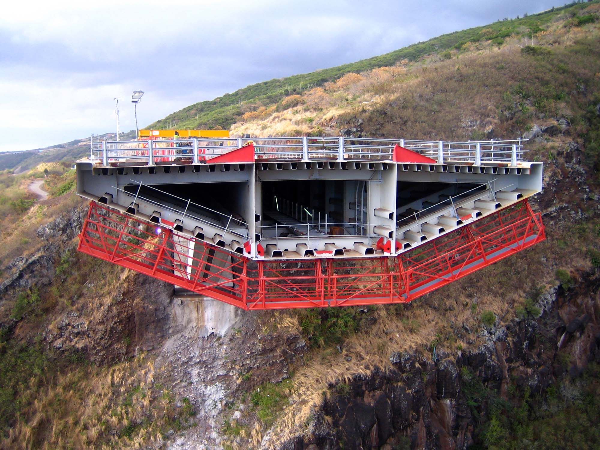 La conception de l’ouvrage final et de sa méthode de construction a du tenir compte de contraintes fortes: les dimensions de la ravine à franchir et son inaccessibilité. C’est un pont à béquille qui a été retenu pour franchir près de 300 m à 170 m de haut. Le fonctionnement de l’ouvrage sous charges de poids propre est particulier: ce n’est pas celui d’un arc, habituellement rencontré pour un pont à béquille mais bien celui d’une structure en encorbellement. De gigantesques culées à contrepoids enterrées équilibrent la structure par l’intermédiaire de câbles de précontrainte. Seules des charges verticales sont transmises au terrain. Le tablier de 20 m de large et 288 m de long est un caisson entièrement métallique à dalle orthotrope. Des aciers de précontrainte (torons gainés graissés et torons clairs fprg 1860 N/mm²) sont également utilisés, dans les bracons, dans les culées, et au travers du tablier et des culées, pour forcer le fonctionnement et mobiliser le contrepoids.