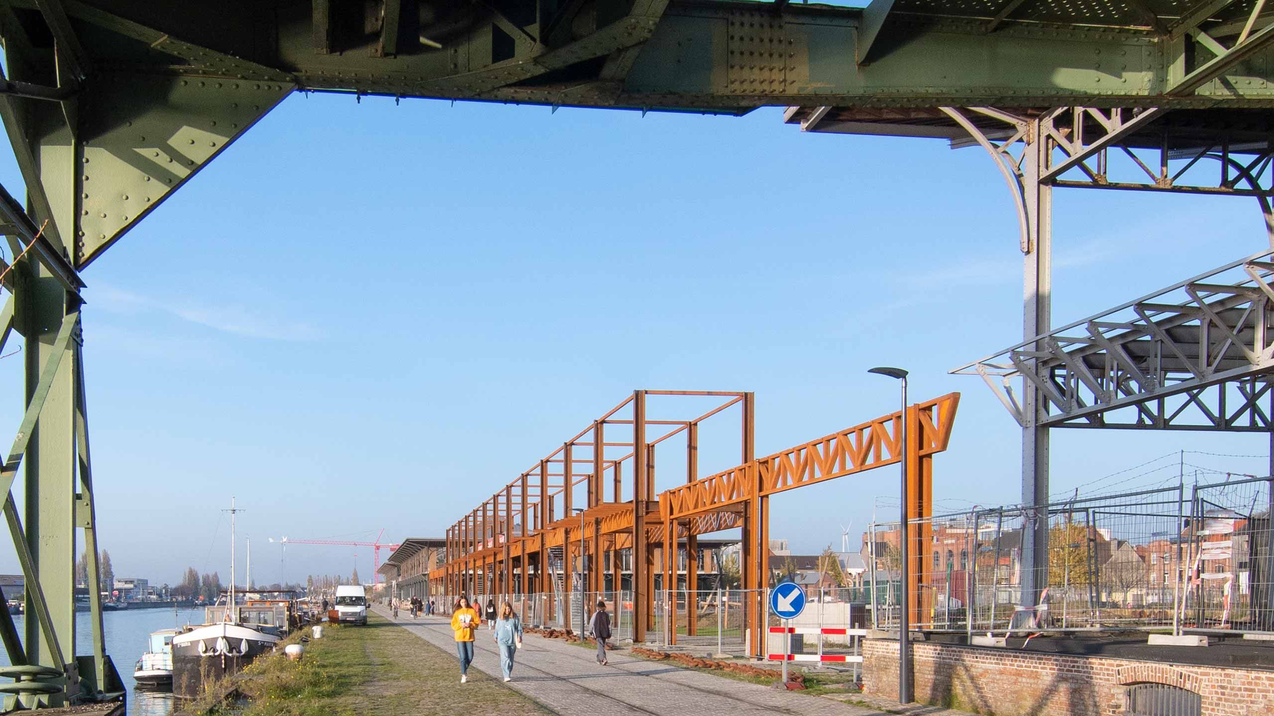 Pergola en acier auto-patinable dans le ‘Voorhaven’ de Gand