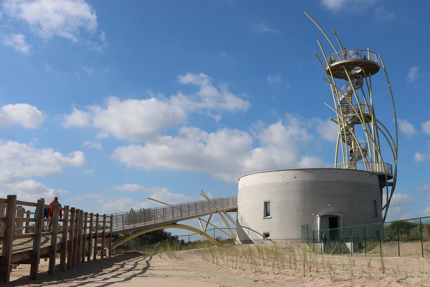 Reliant Middelkerke à Westende, les dunes de la Warande constituent une réserve naturelle de 32 hectares en excellent état de conservation offrant une riche diversité de végétation. Buissons de hauteurs variées, végétations dunales et oyats de tous types y prospèrent depuis que le monde est monde et côtoient des mares qui accueillent grenouilles et autres amphibiens. C’est ici que se dressait depuis toujours un château d’eau inaccessible au public, un ouvrage qui avait certes son utilité mais qui pouvait heurter le regard dans ce paysage de dunes. La commune a donc pris la décision de remplacer cette construction artificielle par un point d’attraction touristique à taille humaine.
