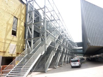 à un sentier, cet ouvrage fait partie intégrante des circuits piétonniers de découverte touristique de la ville de Liège. L’intégralité de la structure constituant la plate-forme - les 2 volées d’escaliers, le palier et les garde-corps - sont réalisés en acier auto-patinable et reposent sur des fondations en béton.</p>