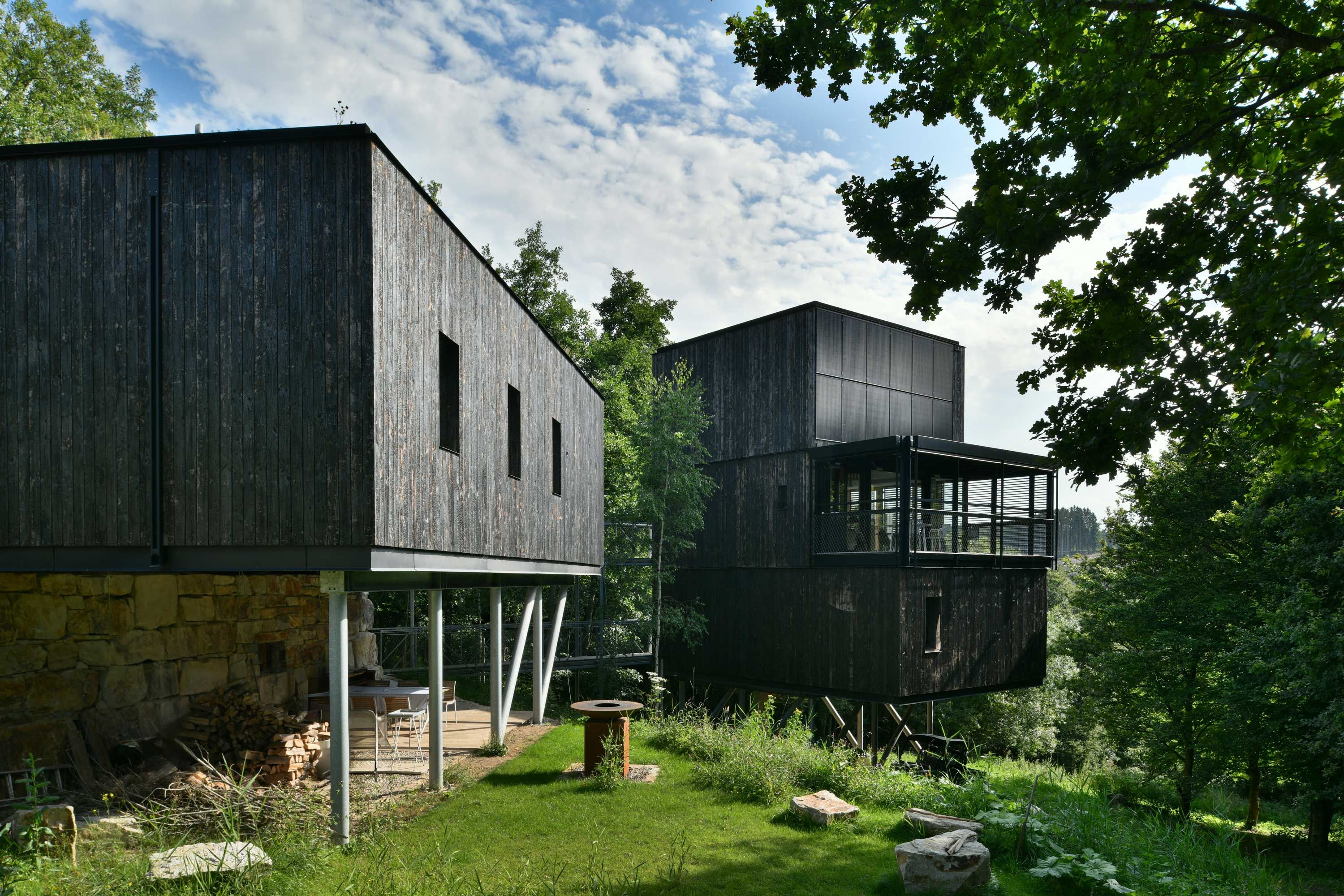 Maison à ossature métallique sur un terrain en pente raide