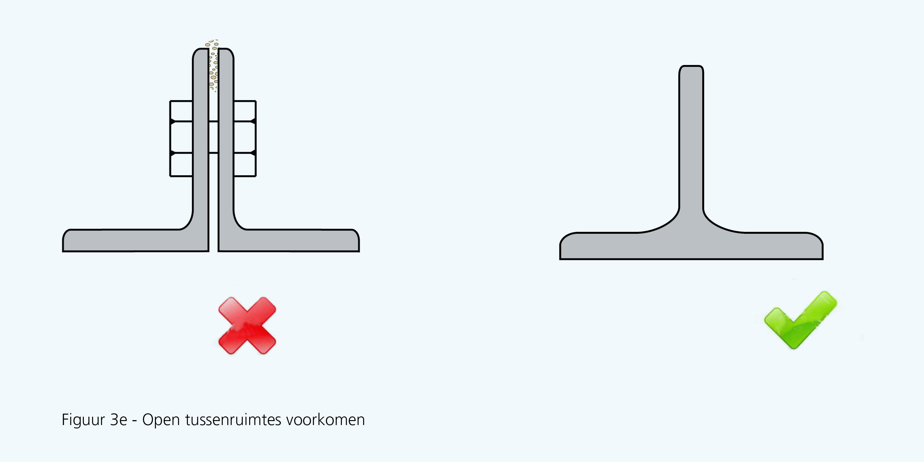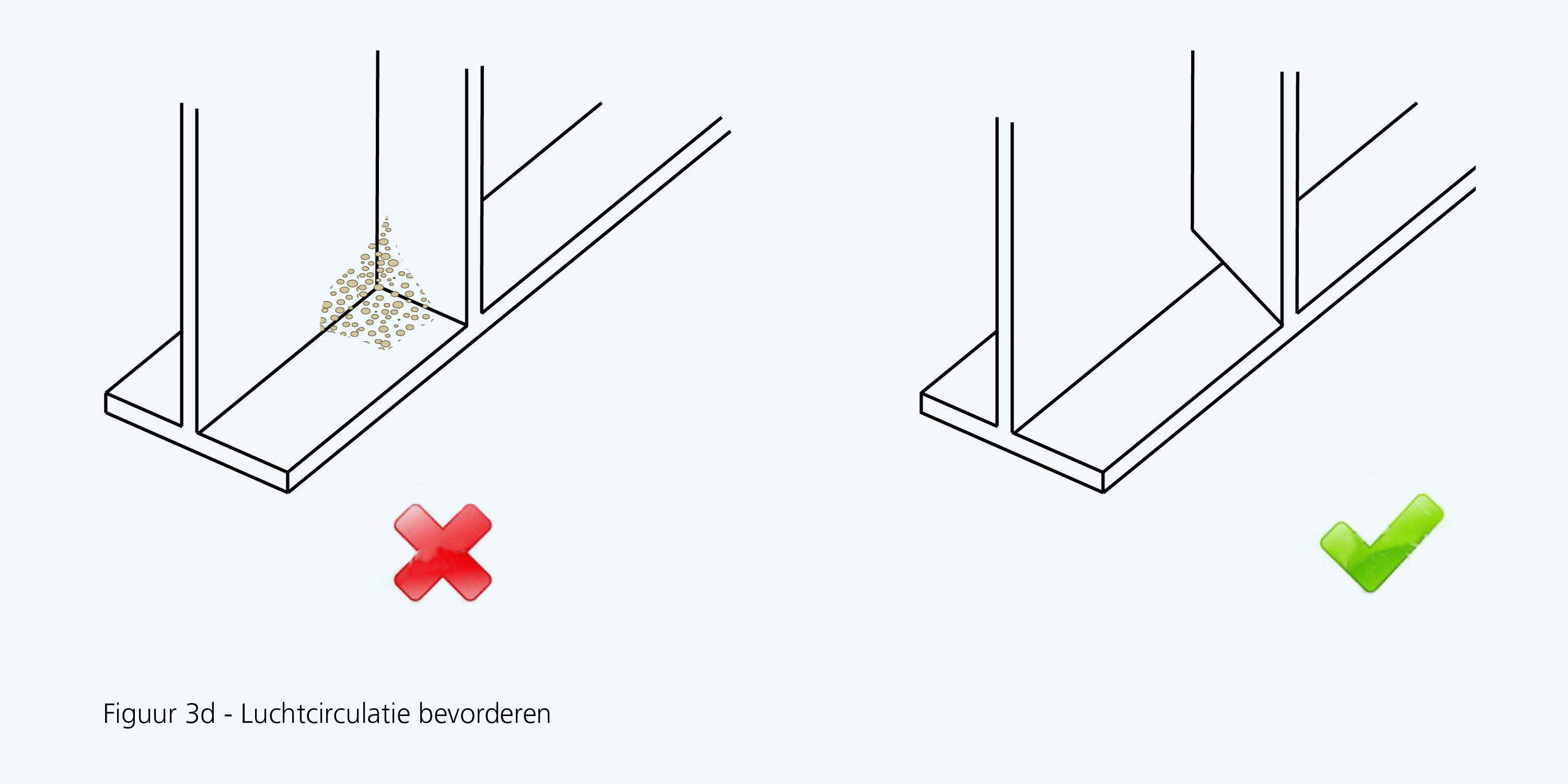 In de praktijk zijn het daardoor bijna altijd beschadigingen of een slechte vormgeving die nog aan de basis liggen van corrosieproblemen. Op vlak van vormgeving zijn de problemen bijna altijd te herleiden tot de opstapeling van vuil, of stagerend water :